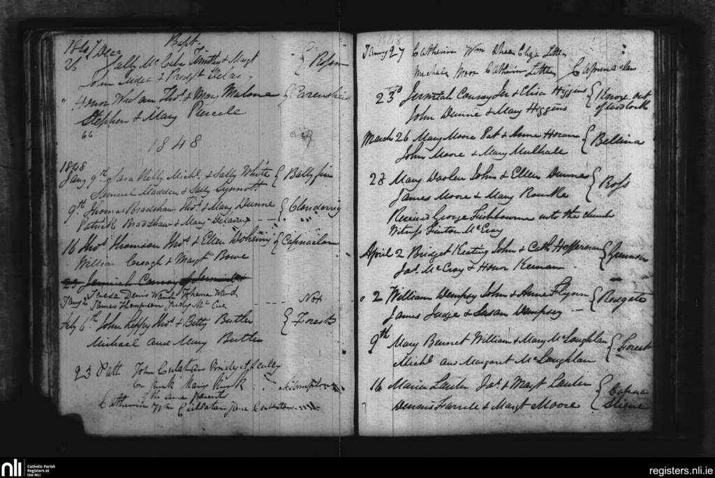 Cappinrush; County of Laois; Diocese of Kildare and Leighlin. Baptisms, Dec. 1847 to Apr. 1848
