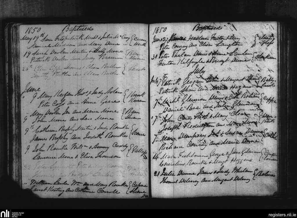 Cappinrush; County of Laois; Diocese of Kildare and Leighlin. Baptisms, May 1850 to July 1850