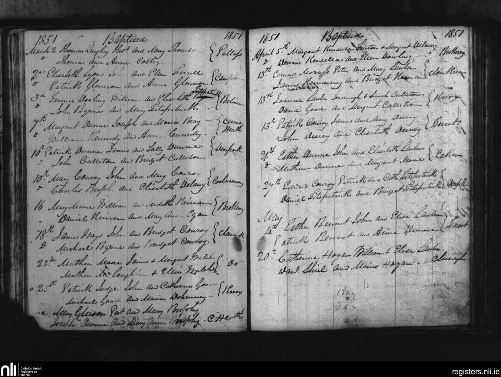Cappinrush; County of Laois; Diocese of Kildare and Leighlin. Baptisms, Mar. 1851 to May 1851