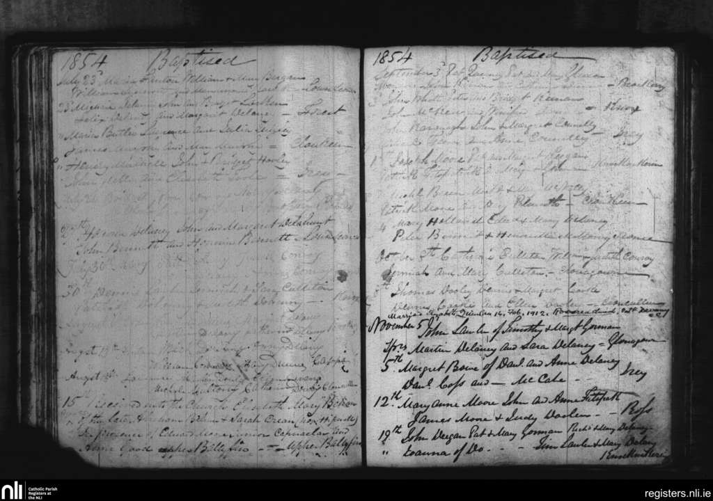 Cappinrush; County of Laois; Diocese of Kildare and Leighlin. Baptisms, Marriages, July 1854 to Feb. 1912