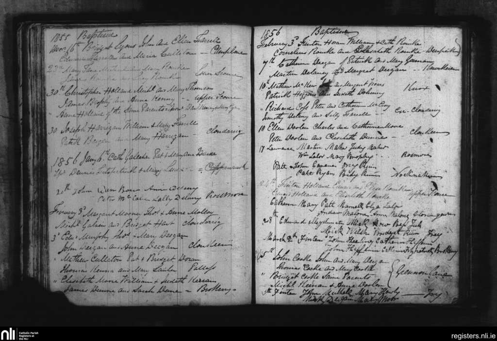 Cappinrush; County of Laois; Diocese of Kildare and Leighlin. Baptisms, Dec. 1855 to Mar. 1856