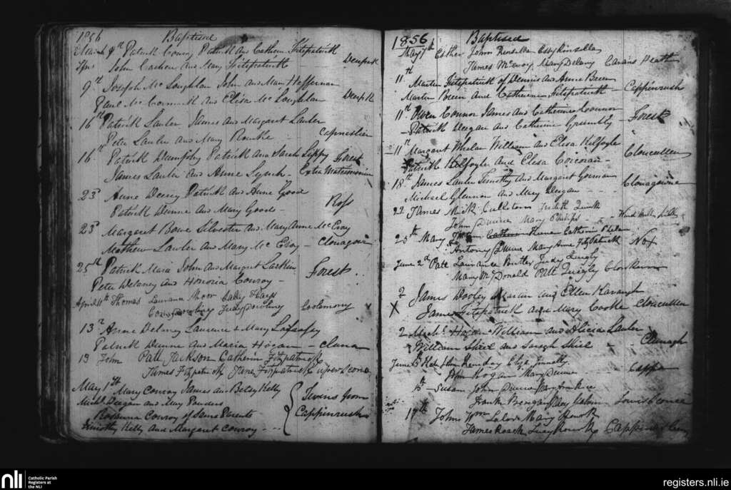 Cappinrush; County of Laois; Diocese of Kildare and Leighlin. Baptisms, Mar. 1856 to June 1856