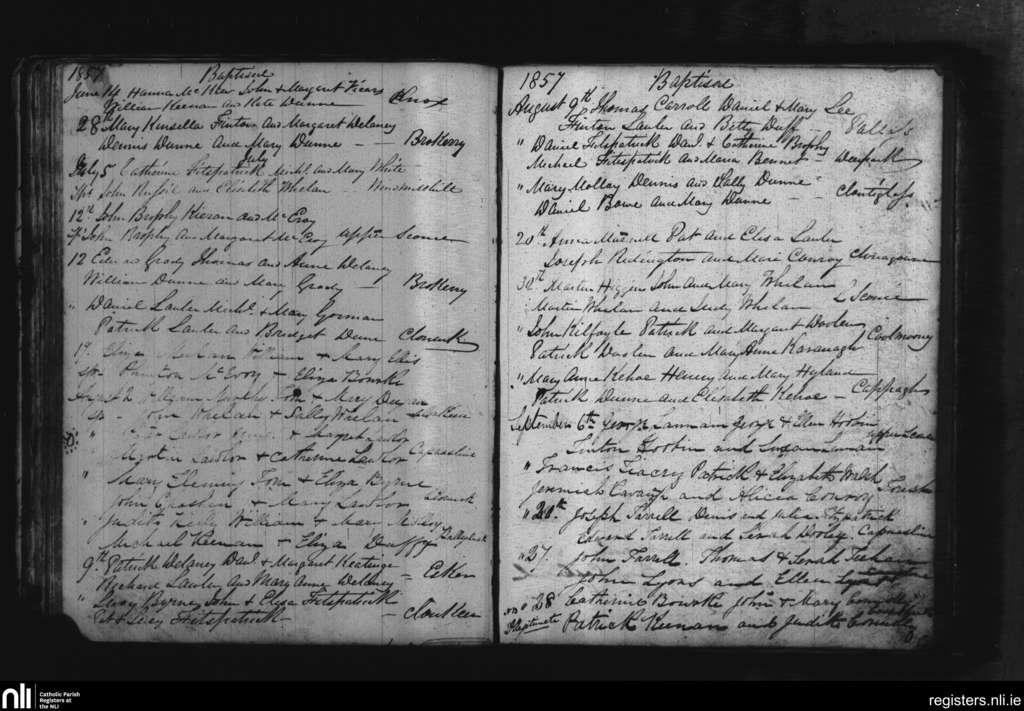 Cappinrush; County of Laois; Diocese of Kildare and Leighlin. Baptisms, June 1857 to Sep. 1857