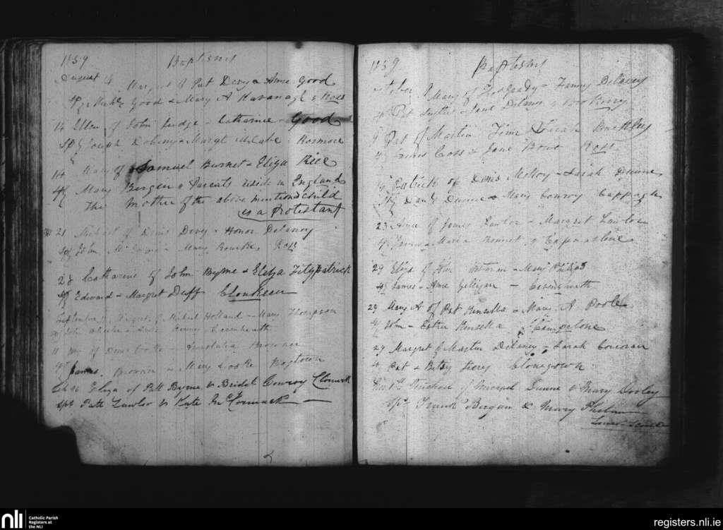 Cappinrush; County of Laois; Diocese of Kildare and Leighlin. Baptisms, Aug. 1859 to Nov. 1859