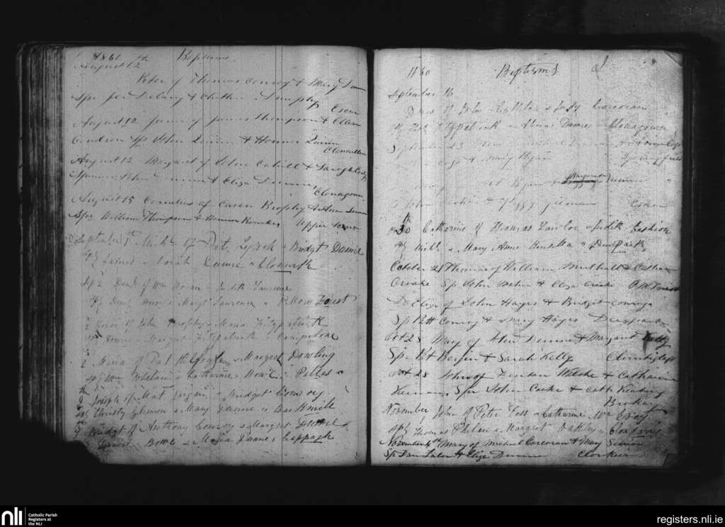 Cappinrush; County of Laois; Diocese of Kildare and Leighlin. Baptisms, Aug. 1860 to Nov. 1860