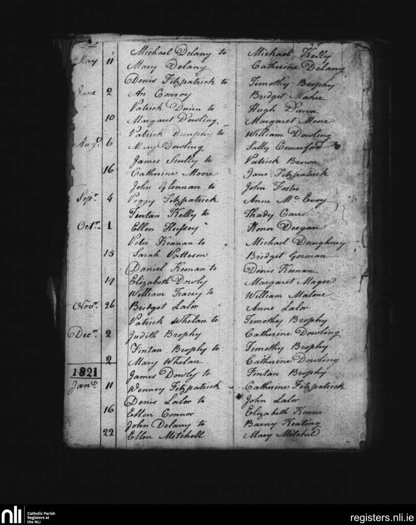 Cappinrush; County of Laois; Diocese of Kildare and Leighlin. Marriages, May 1820 to Jan. 1821