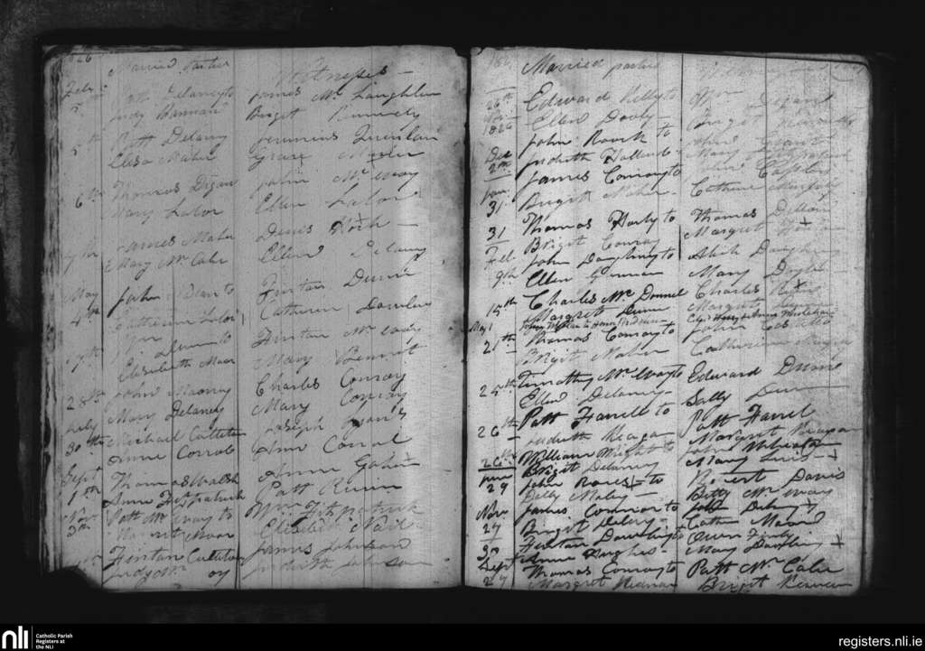 Cappinrush; County of Laois; Diocese of Kildare and Leighlin. Marriages, Feb. 1826 to Nov. 1827