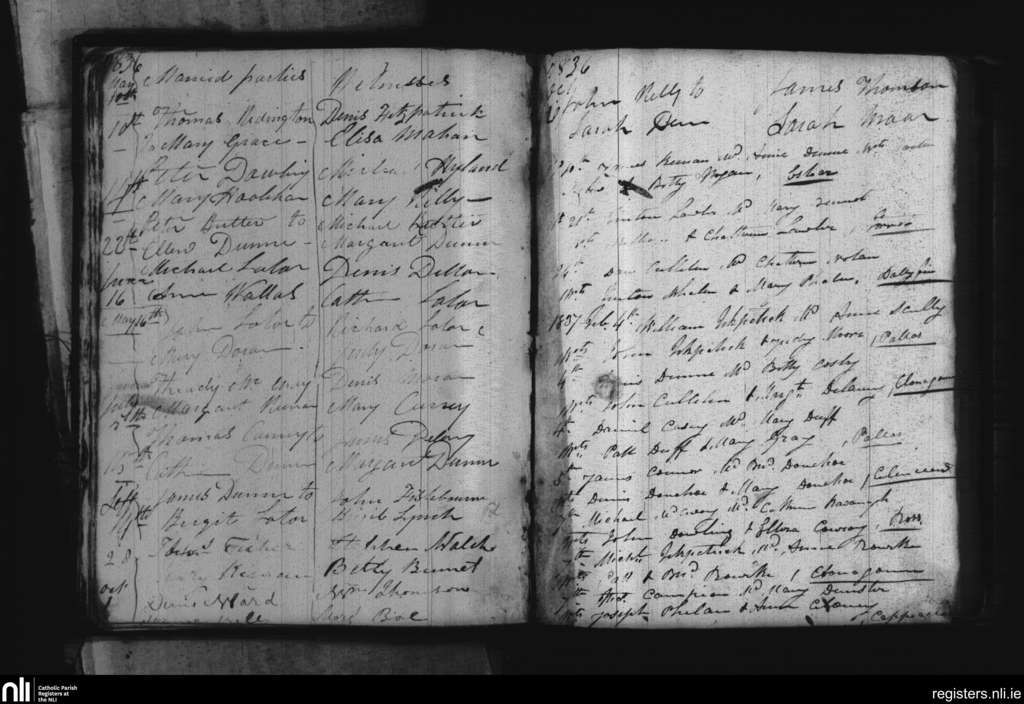 Cappinrush; County of Laois; Diocese of Kildare and Leighlin. Marriages, May 1836 to Feb. 1837