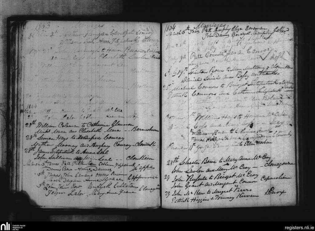 Cappinrush; County of Laois; Diocese of Kildare and Leighlin. Marriages, Oct. 1853 to Nov. 1854