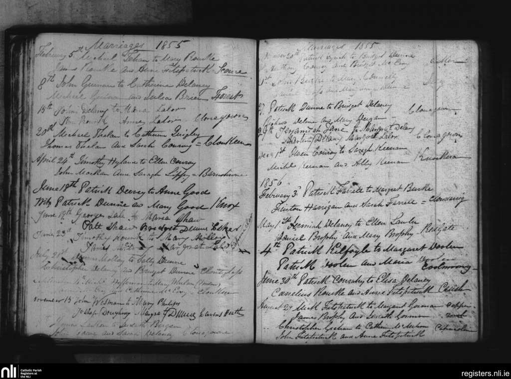 Cappinrush; County of Laois; Diocese of Kildare and Leighlin. Marriages, Feb. 1855 to Aug. 1856