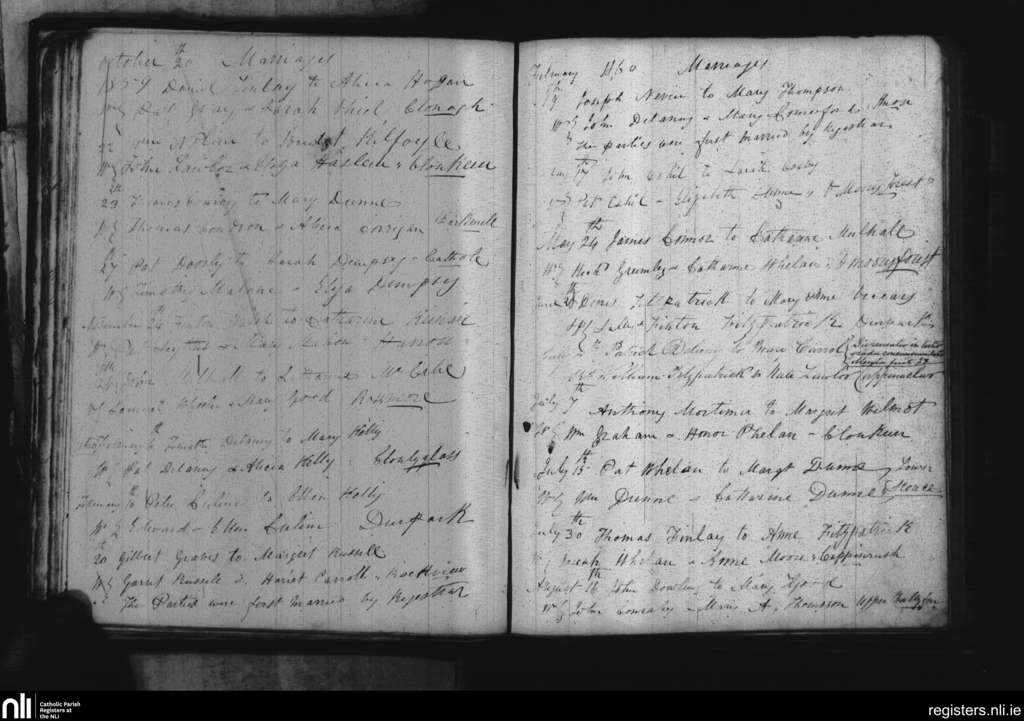 Cappinrush; County of Laois; Diocese of Kildare and Leighlin. Marriages, Oct. 1859 to Aug. 1860
