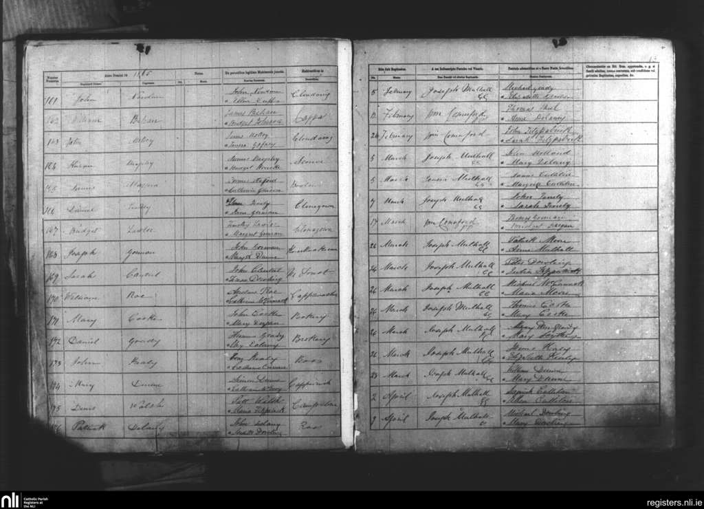 Cappinrush; County of Laois; Diocese of Kildare and Leighlin. Baptisms, Feb. 1865 to Apr. 1865