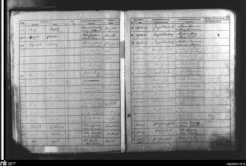 Cappinrush; County of Laois; Diocese of Kildare and Leighlin. Baptisms, Sep. 1867 to Jan. 1868
