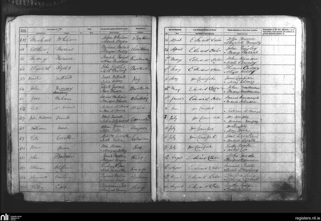 Cappinrush; County of Laois; Diocese of Kildare and Leighlin. Baptisms, Apr. 1870 to Aug. 1870