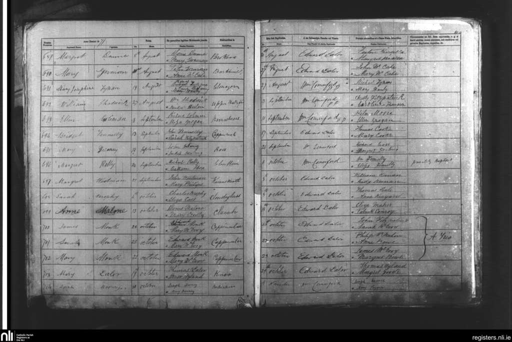 Cappinrush; County of Laois; Diocese of Kildare and Leighlin. Baptisms, Aug. 1871 to Nov. 1871