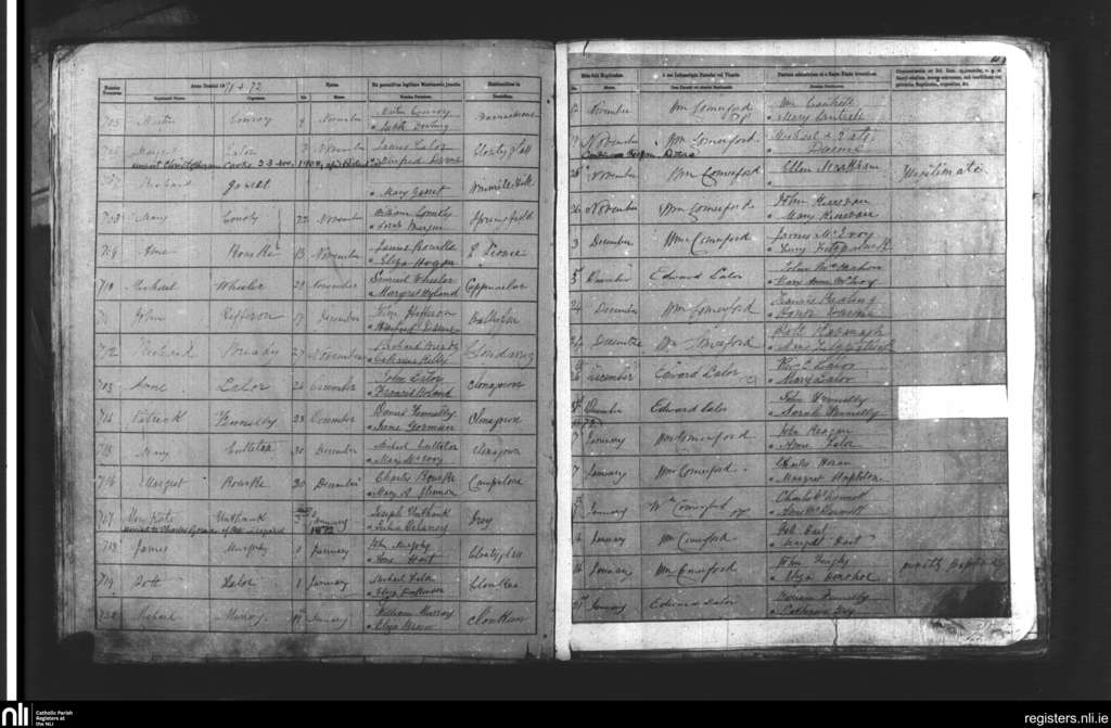 Cappinrush; County of Laois; Diocese of Kildare and Leighlin. Baptisms, Nov. 1871 to Jan. 1872