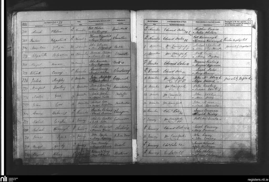Cappinrush; County of Laois; Diocese of Kildare and Leighlin. Baptisms, Nov. 1872 to Jan. 1873