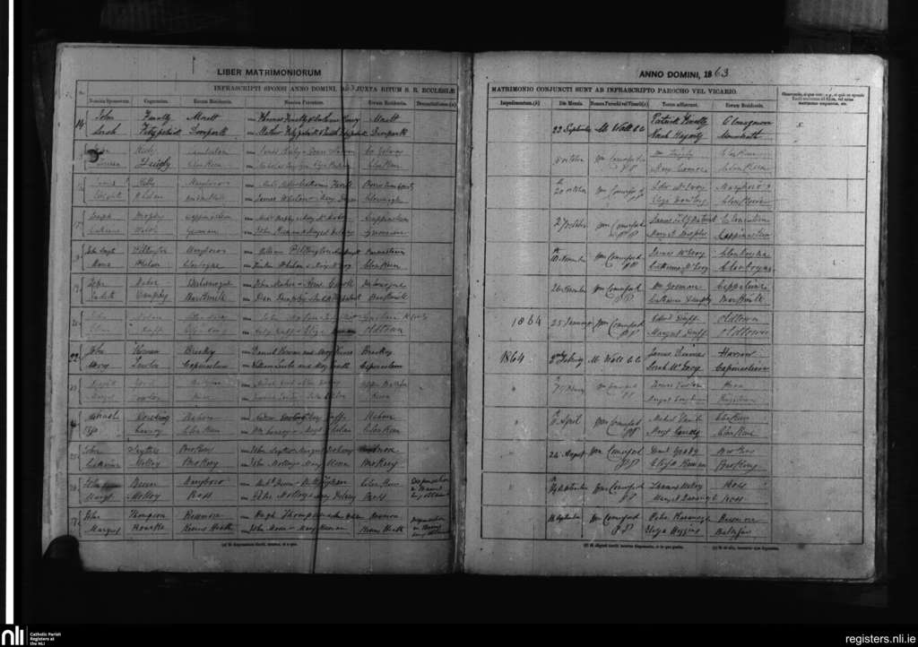 Cappinrush; County of Laois; Diocese of Kildare and Leighlin. Marriages, Sep. 1863 to Sep. 1864