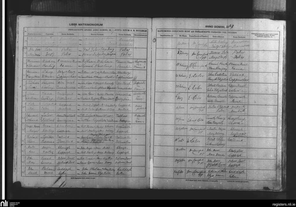 Cappinrush; County of Laois; Diocese of Kildare and Leighlin. Marriages, Nov. 1867 to Nov. 1868