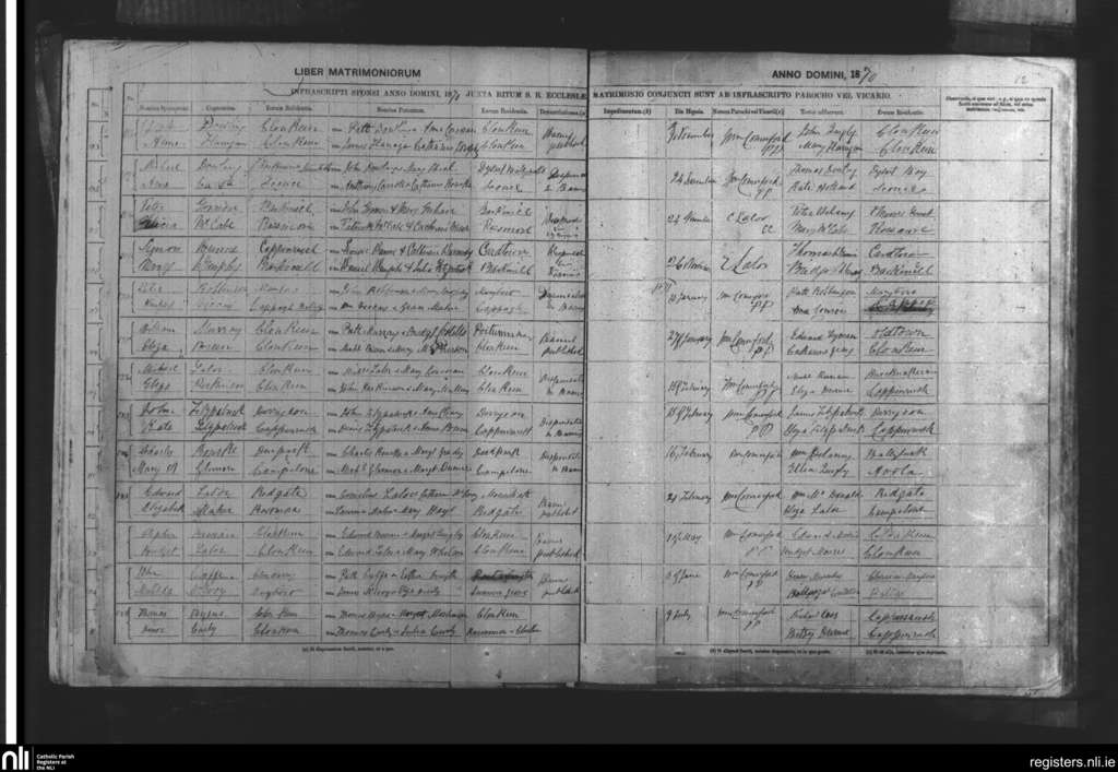 Cappinrush; County of Laois; Diocese of Kildare and Leighlin. Marriages, Nov. 1870 to July 1871