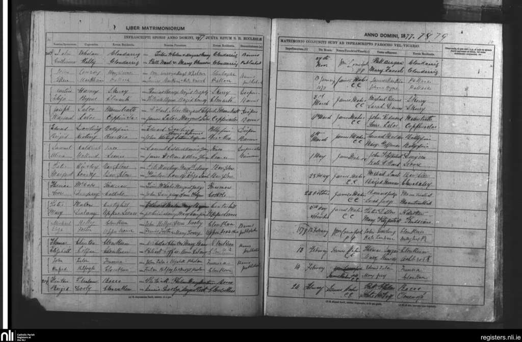 Cappinrush; County of Laois; Diocese of Kildare and Leighlin. Marriages, Nov. 1877 to Feb. 1879