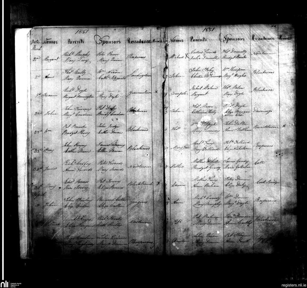 Caragh; County of Kildare; Diocese of Kildare and Leighlin. Baptisms, Mar. 1851 to May 1851