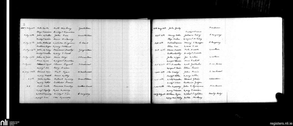 Caragh; County of Kildare; Diocese of Kildare and Leighlin. Marriages, Aug. 1856 to May 1857