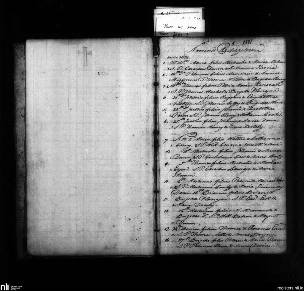 Carbury and Dunforth; County of Kildare; Diocese of Kildare and Leighlin. Baptisms, Oct. 1821 to Nov. 1821