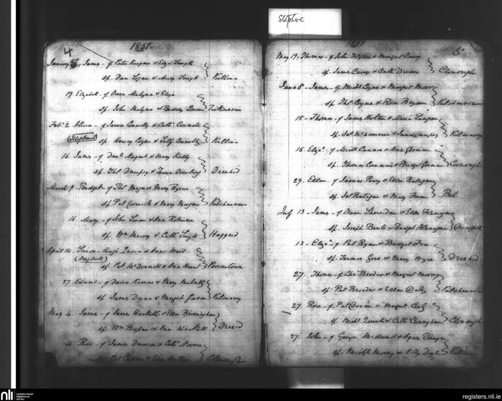 Carbury and Dunforth; County of Kildare; Diocese of Kildare and Leighlin. Baptisms, Jan. 1851 to July 1851
