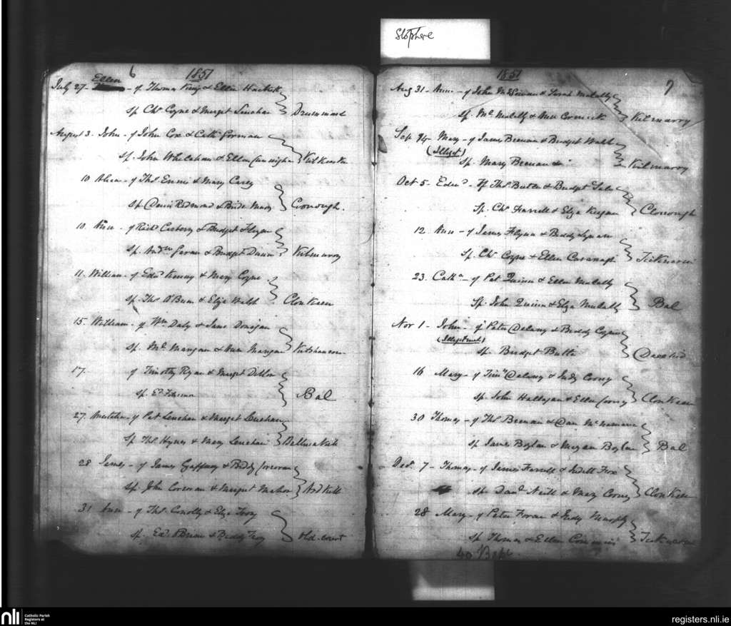 Carbury and Dunforth; County of Kildare; Diocese of Kildare and Leighlin. Baptisms, July 1851 to Dec. 1851