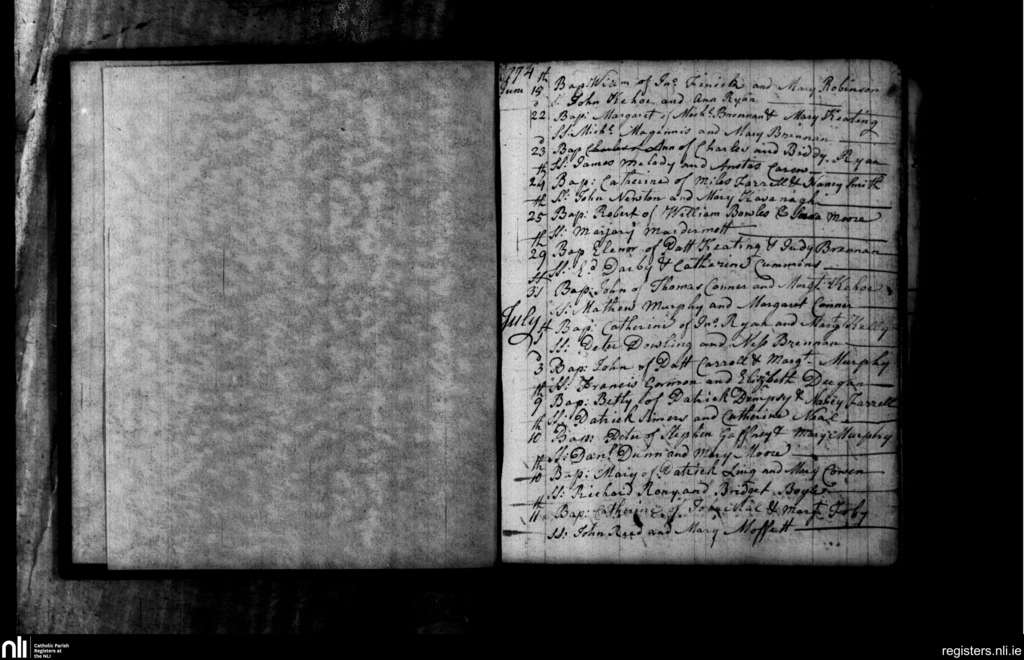 Carlow; County of Carlow, Kildare; Diocese of Kildare and Leighlin. Baptisms, June 1774 to July 1774