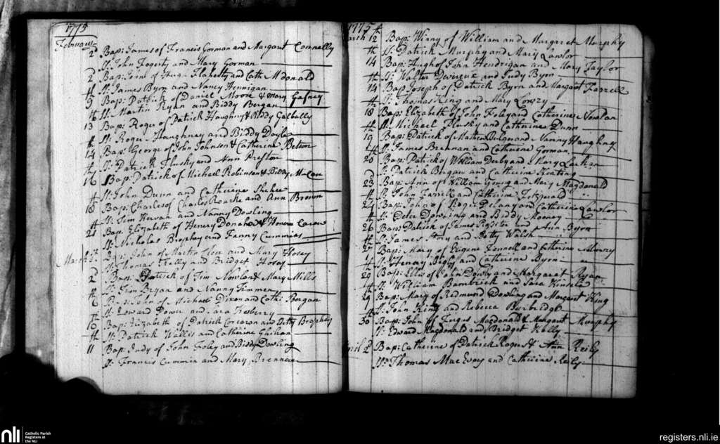 Carlow; County of Carlow, Kildare; Diocese of Kildare and Leighlin. Baptisms, Feb. 1775 to Apr. 1775