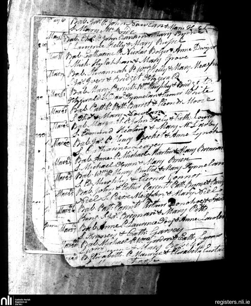 Carlow; County of Carlow, Kildare; Diocese of Kildare and Leighlin. Baptisms, Mar. 1788