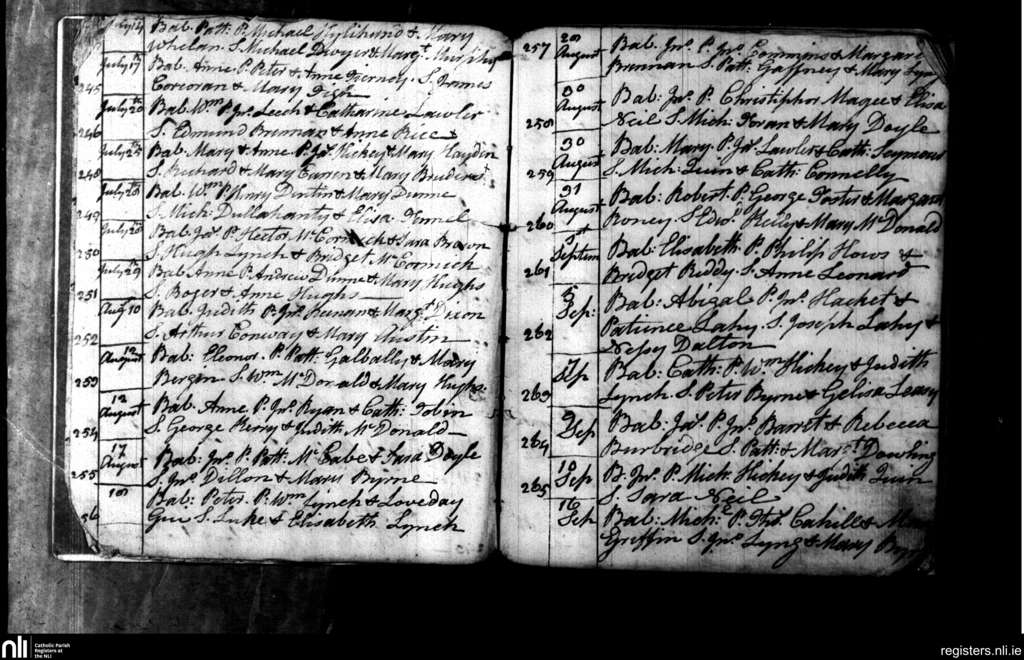 Carlow; County of Carlow, Kildare; Diocese of Kildare and Leighlin. Baptisms, July 1788 to Sep. 1788