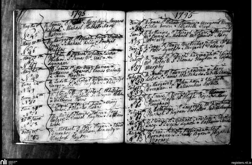 Carlow; County of Carlow, Kildare; Diocese of Kildare and Leighlin. Baptisms, May 1795 to Aug. 1795