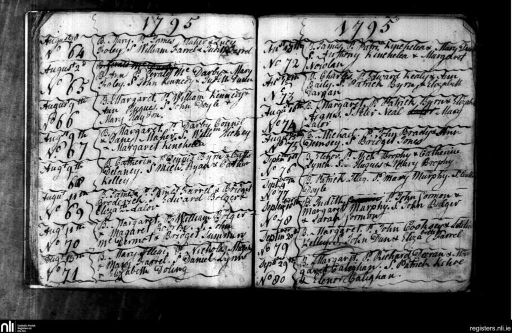 Carlow; County of Carlow, Kildare; Diocese of Kildare and Leighlin. Baptisms, Aug. 1795 to Sep. 1795