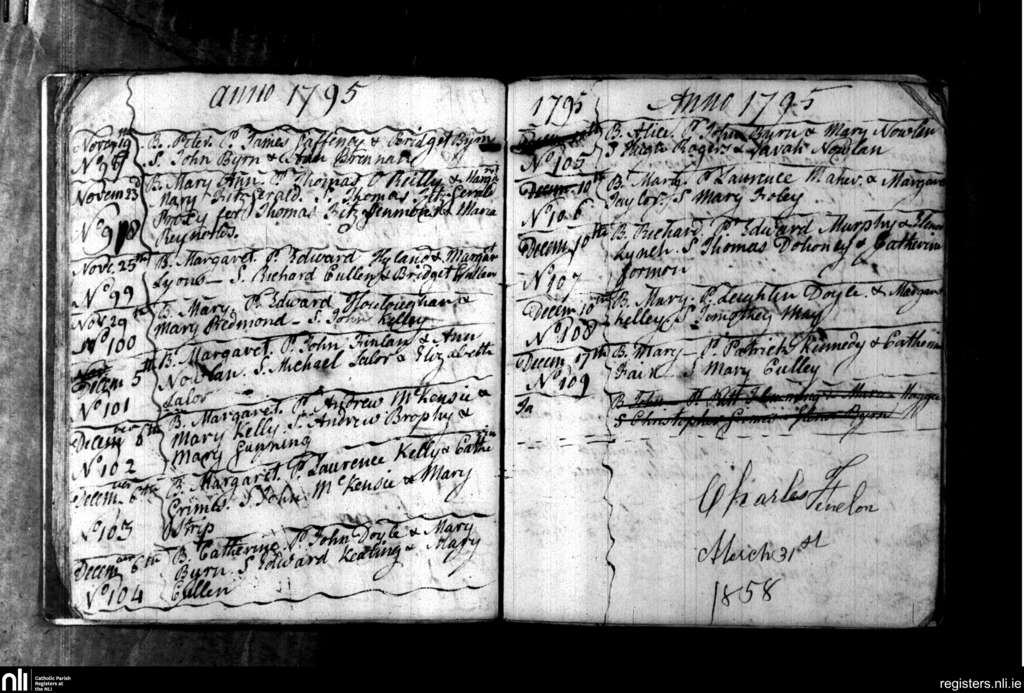 Carlow; County of Carlow, Kildare; Diocese of Kildare and Leighlin. Baptisms, Nov. 1795 to Dec. 1795