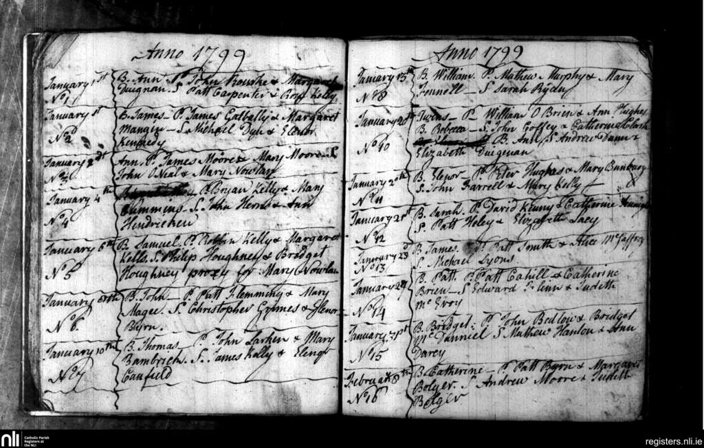 Carlow; County of Carlow, Kildare; Diocese of Kildare and Leighlin. Baptisms, Jan. 1799 to Feb. 1799