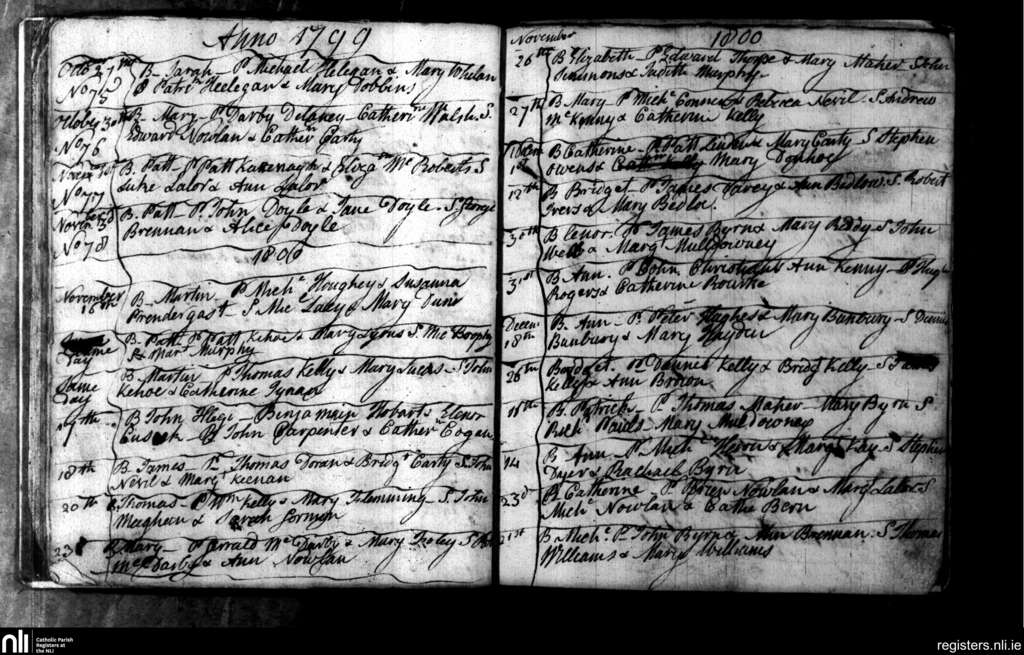Carlow; County of Carlow, Kildare; Diocese of Kildare and Leighlin. Baptisms, Oct. 1799 to Dec. 1799