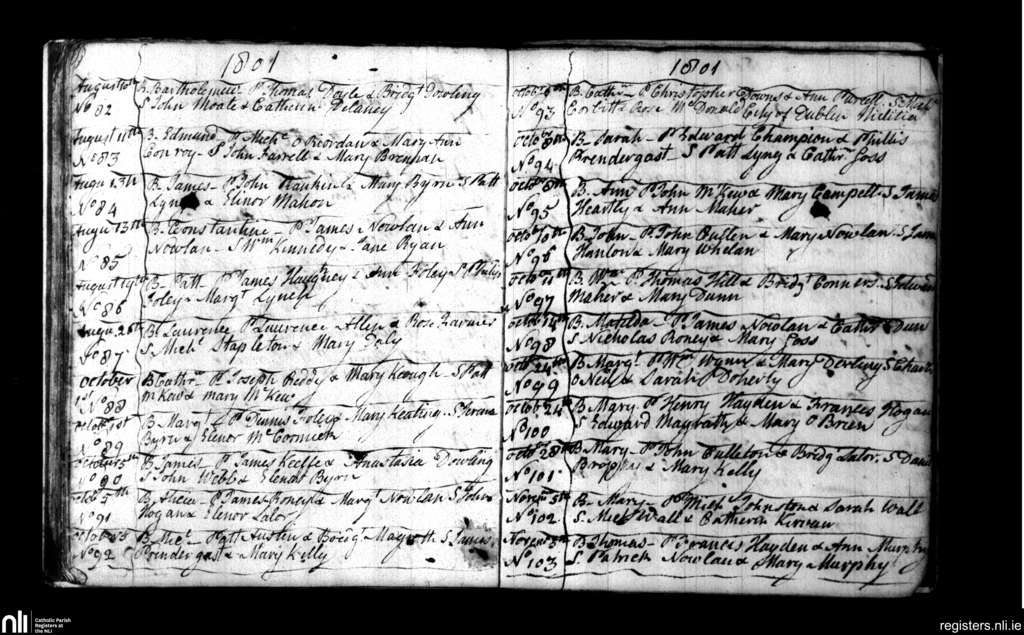 Carlow; County of Carlow, Kildare; Diocese of Kildare and Leighlin. Baptisms, Aug. 1801 to Nov. 1801