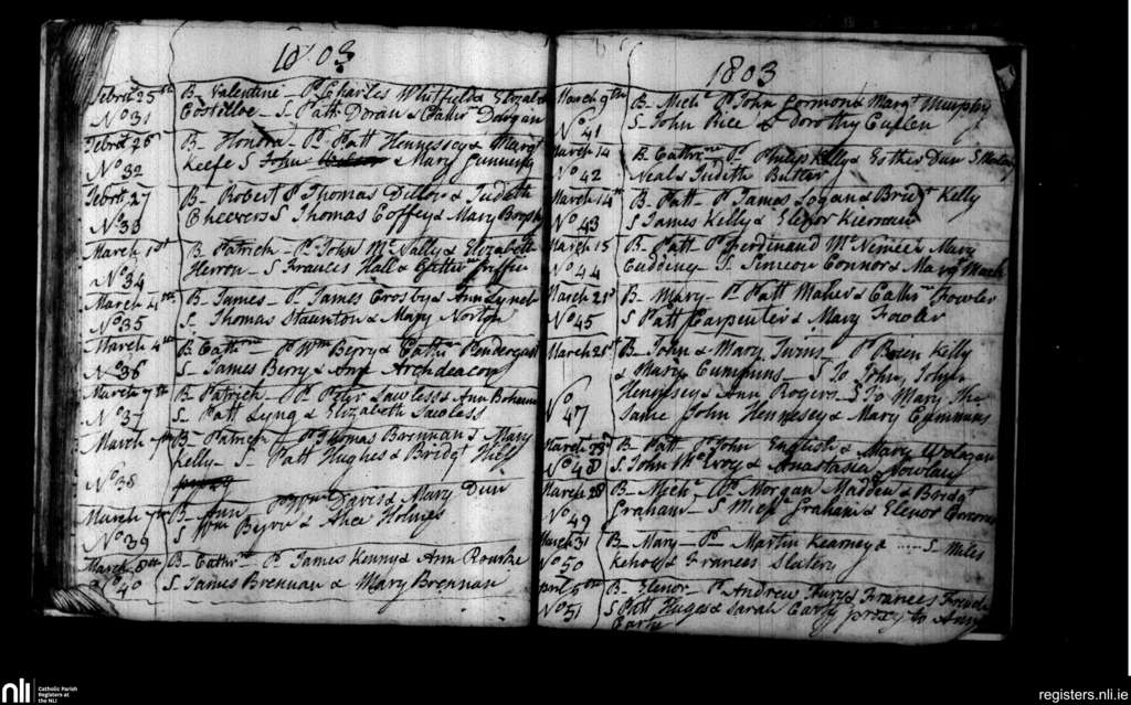 Carlow; County of Carlow, Kildare; Diocese of Kildare and Leighlin. Baptisms, Feb. 1803 to Apr. 1803