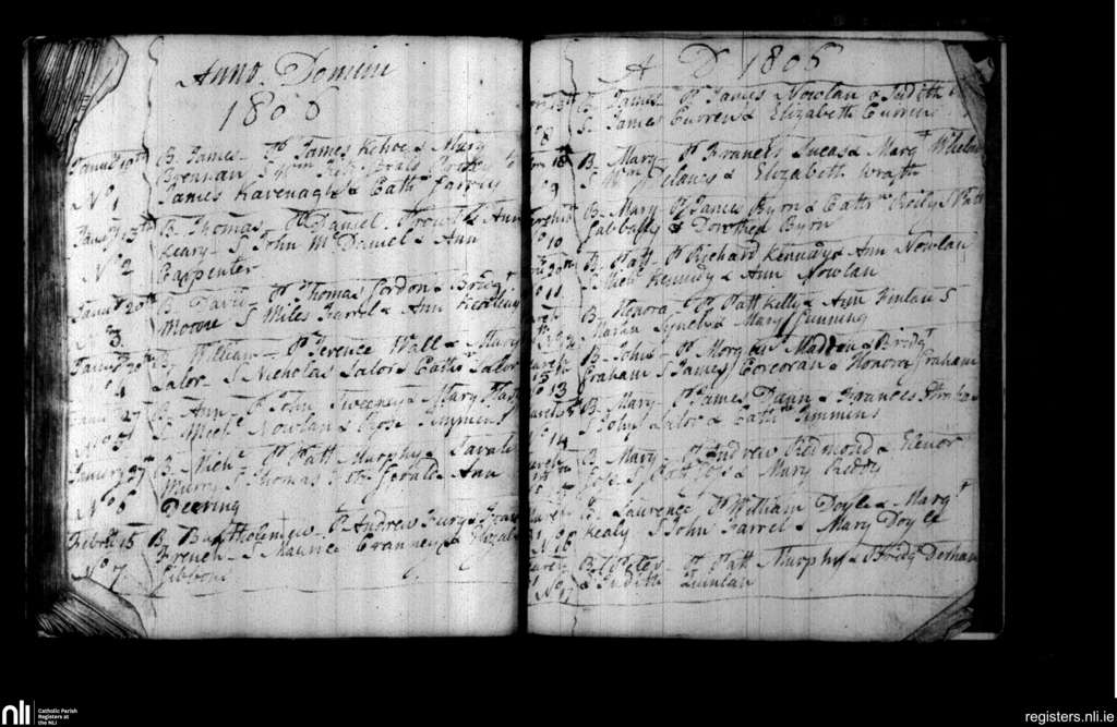 Carlow; County of Carlow, Kildare; Diocese of Kildare and Leighlin. Baptisms, Jan. 1806 to Mar. 1806