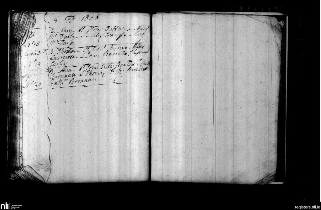Carlow; County of Carlow, Kildare; Diocese of Kildare and Leighlin. Baptisms, Mar. 1806 to Apr. 1806
