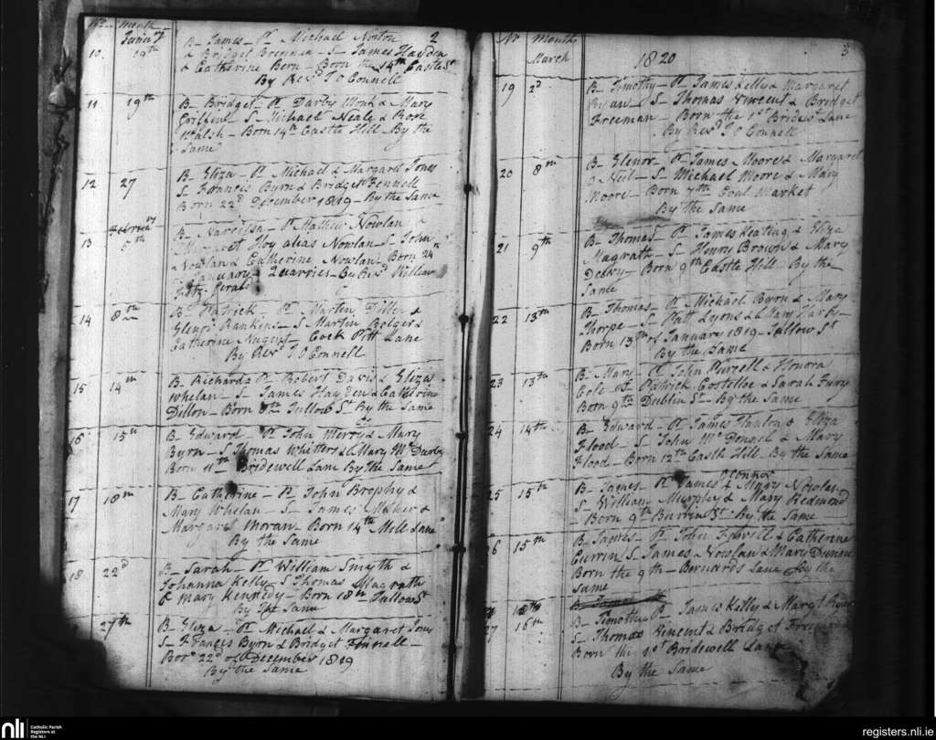 Carlow; County of Carlow, Kildare; Diocese of Kildare and Leighlin. Baptisms, Jan. 1820 to Mar. 1820