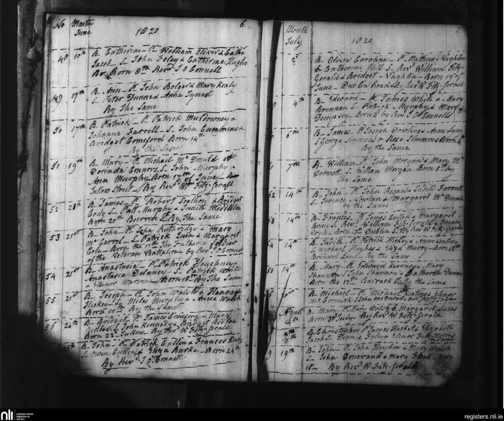 Carlow; County of Carlow, Kildare; Diocese of Kildare and Leighlin. Baptisms, June 1820 to Aug. 1820