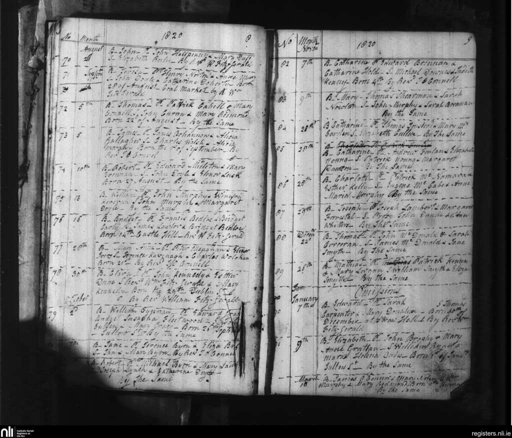 Carlow; County of Carlow, Kildare; Diocese of Kildare and Leighlin. Baptisms, Aug. 1820 to Mar. 1821