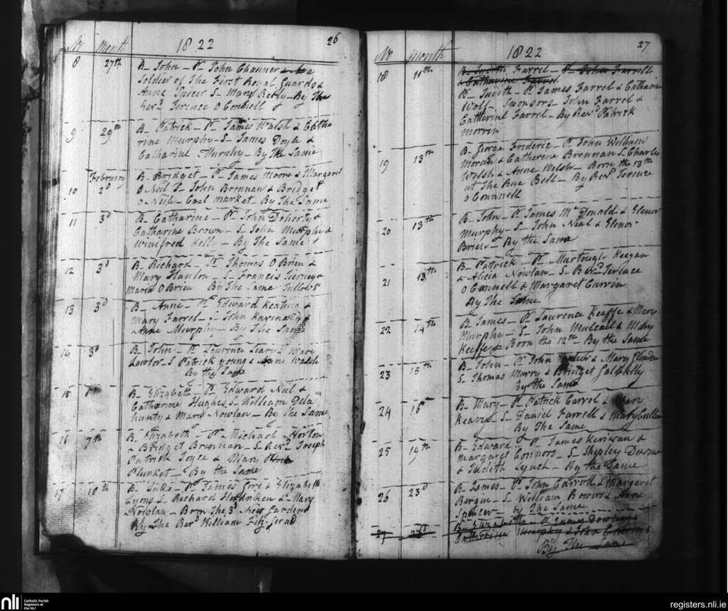 Carlow; County of Carlow, Kildare; Diocese of Kildare and Leighlin. Baptisms, Feb. 1822