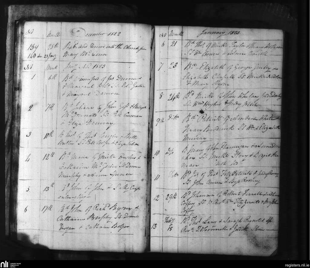 Carlow; County of Carlow, Kildare; Diocese of Kildare and Leighlin. Baptisms, Dec. 1822 to Feb. 1823