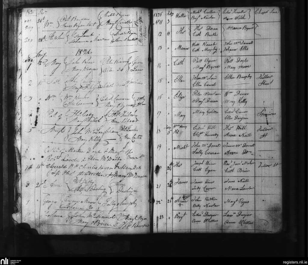 Carlow; County of Carlow, Kildare; Diocese of Kildare and Leighlin. Baptisms, Dec. 1825 to Feb. 1826