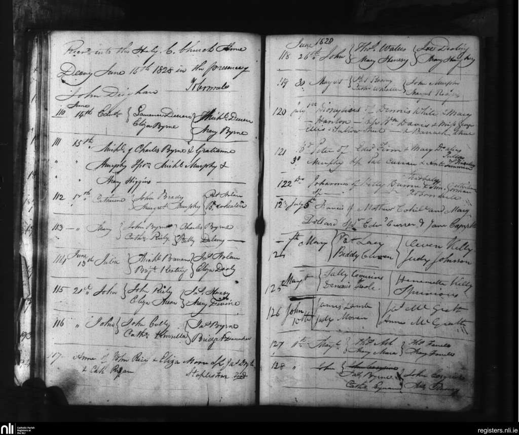 Carlow; County of Carlow, Kildare; Diocese of Kildare and Leighlin. Baptisms, June 1828 to July 1828